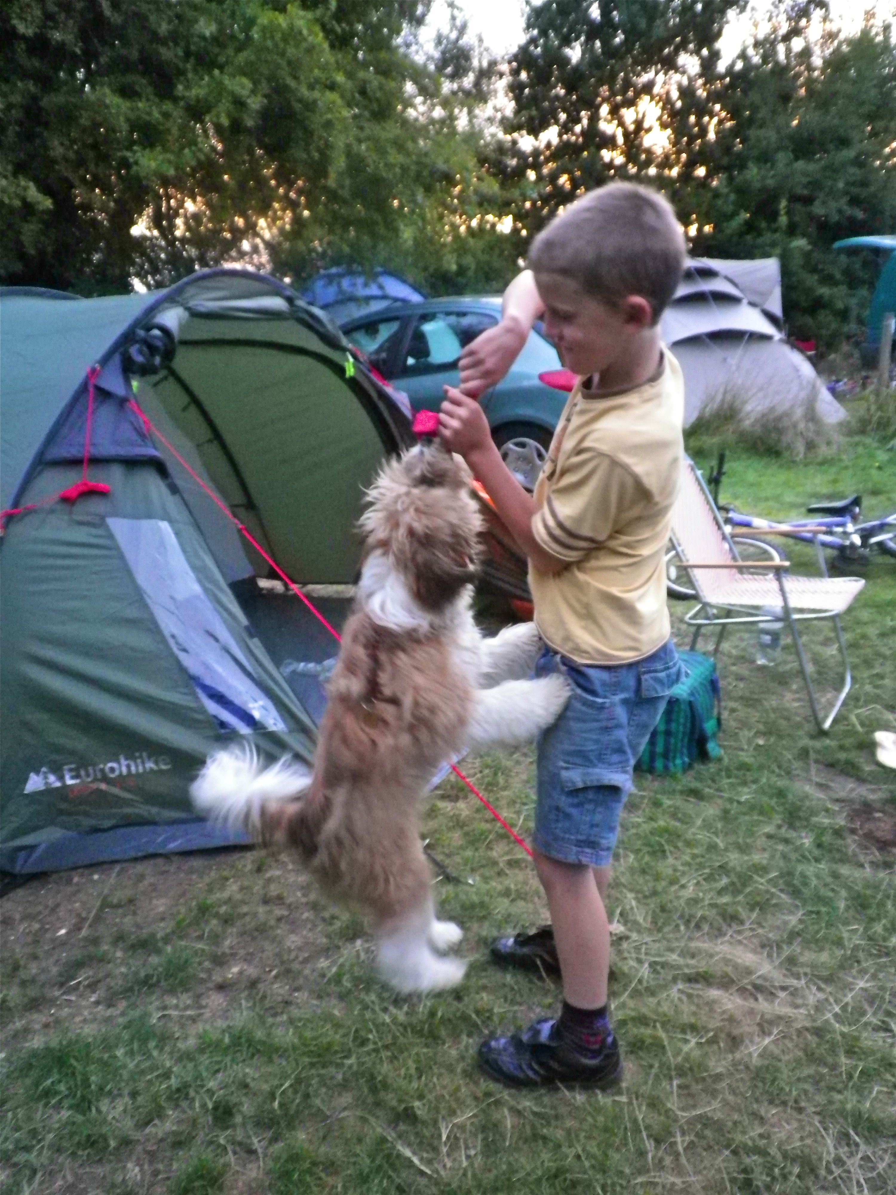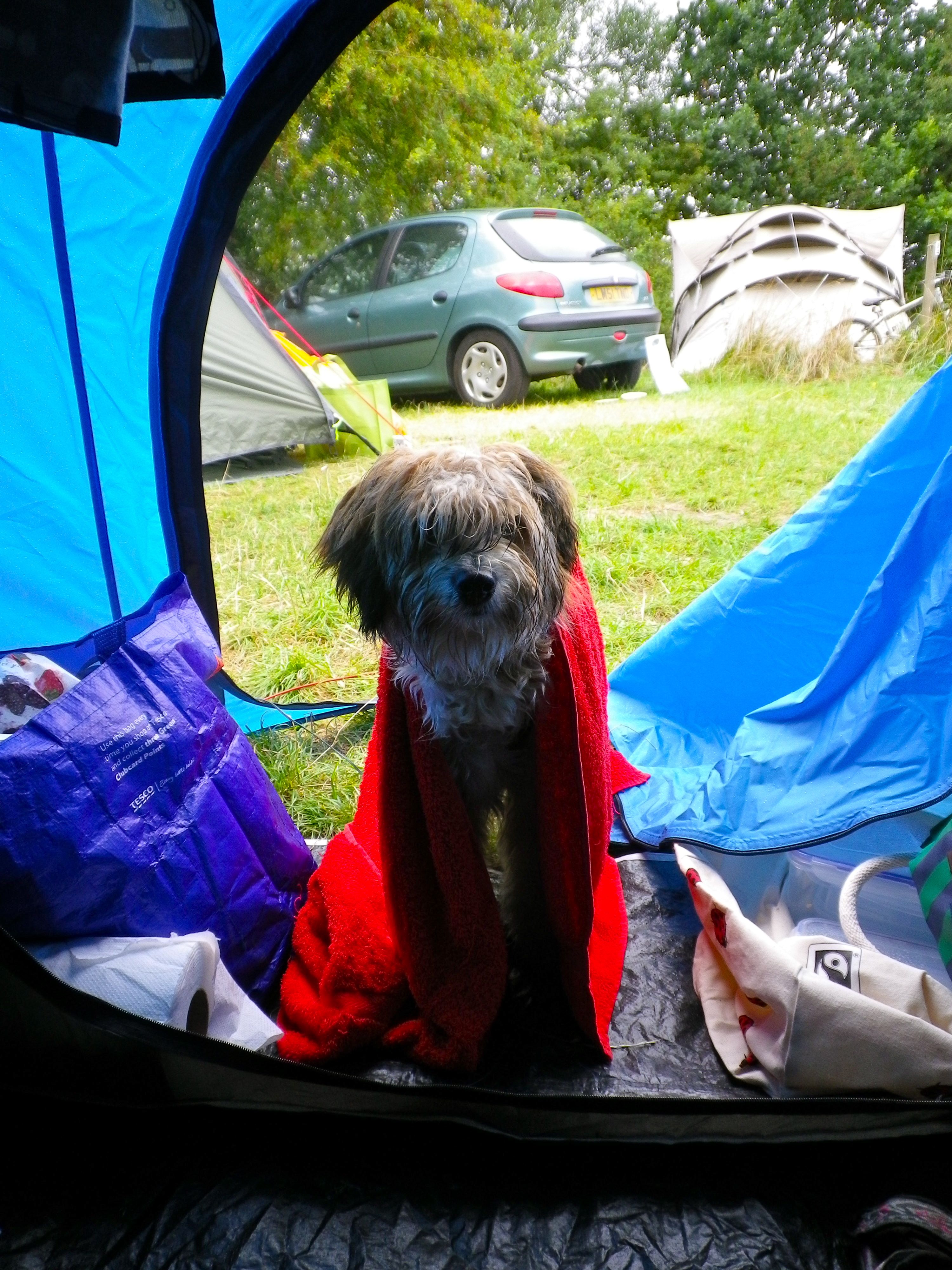 We’ve managed to get out to a couple of sites without a car, which means packing fairly light, but never with anything smaller than a 3-man tent. You will need some extra space for those times that your dog is wet, muddy or having a mad moment.